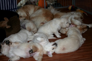 ... und wenn uns dann die Welpen zu Beginn der 9. Lebenswoche verlassen, haben sie eine liebevolle Prägung durch unsere Familie erhalten, die "Stubenreinheit" wurde geübt und alle hören auch schon auf den "Hier-Pfiff" der Hundepfeife ! Als seriöse Züchter bekommen unsere Welpenkäufer von uns einen Welpen ausschließlich mit schriftlichem Kaufvertrag. Des Weiteren gibt es dazu immer eine Ahnentafel sowie einen Wurfabnahmebericht vom Golden Retriever Club. | ||||||||||||||||||||||||||||||||||||||||||||||||||||||||||||||||||||||||||||||||||||||||||